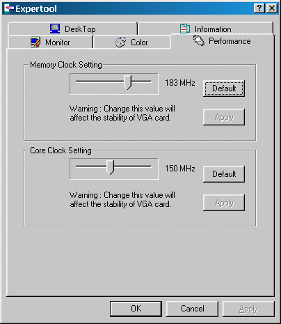 I believe this would be a major concern to a lot of users out there. Anyway, Super 7 motherboard users would be delighted to know that there's no problem running this card on their existing boards. As what Vijay said in his other reviews, you just have to make sure that you install the latest chipset drivers, and you should be on your way to having fun with your newly acquired video card. However, users may have a tougher time getting it to run on motherboards using the ALi chipsets. In any case, do make sure you have the latest motherboard BIOS and drivers installed, and there should be little problem.