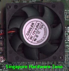 Passive cooling on for the TNT2 Ultra is indeed unthinkable as the amount of heat produced is probably too great to get rid of by means of just a heatsink alone. Fortunately, the Cardex TNT2 Ultra utilises active cooling. On close examination, the heatsink and fan placed on the Cardex TNT2 Ultra has a fan integrated into the heatsink. Check out some shots of the cooling system of the Cardex TNT2 Ultra!