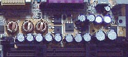 Below the transistorsThe package comes in a dull looking white box without any designs whatsoever. The only thing that caught my eye was the cautionary label placed on top of the box. As with most K7 motherboards I've seen so far, this precautionary notice is almost a must. Hmm, you must be wondering what I'm talking about. Well, it is the biggest issue about K7, and it is the power supply, which should not be taken too lightly.