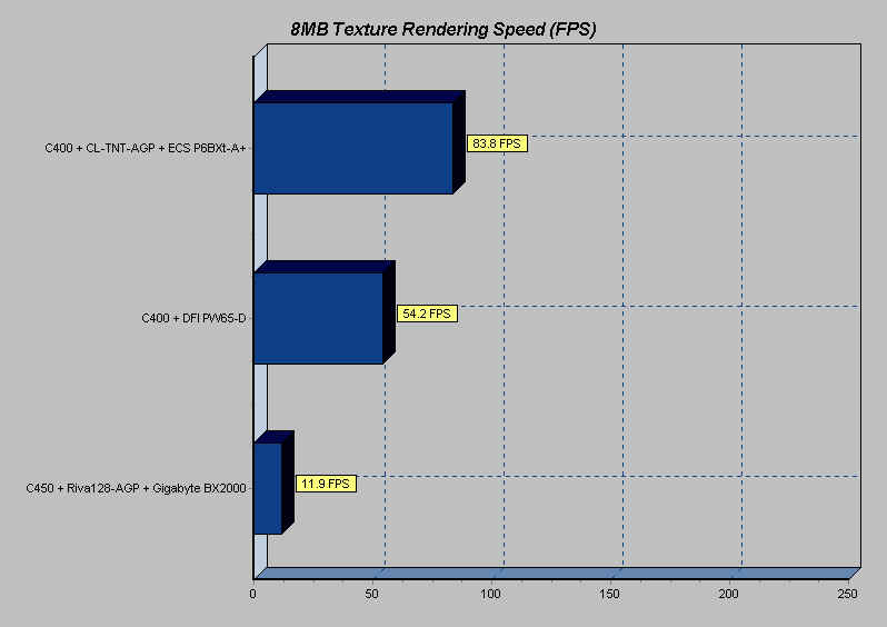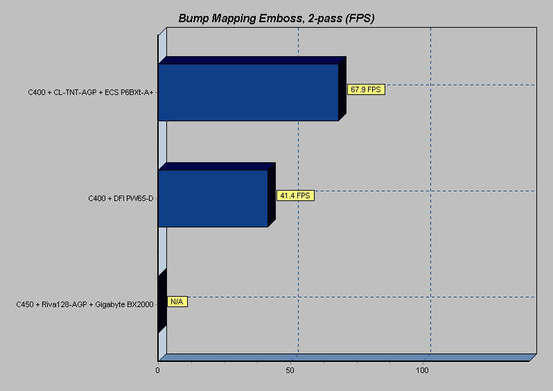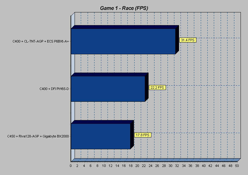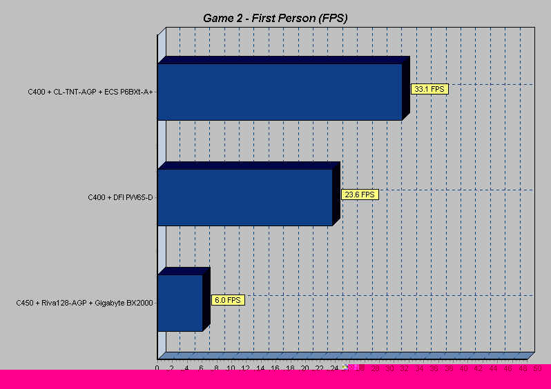 Here are the Quake-2 results for the DFI PW65-D i810 motherboard against a Gigabyte BX2000 + Canopus Riva128-AGP:
