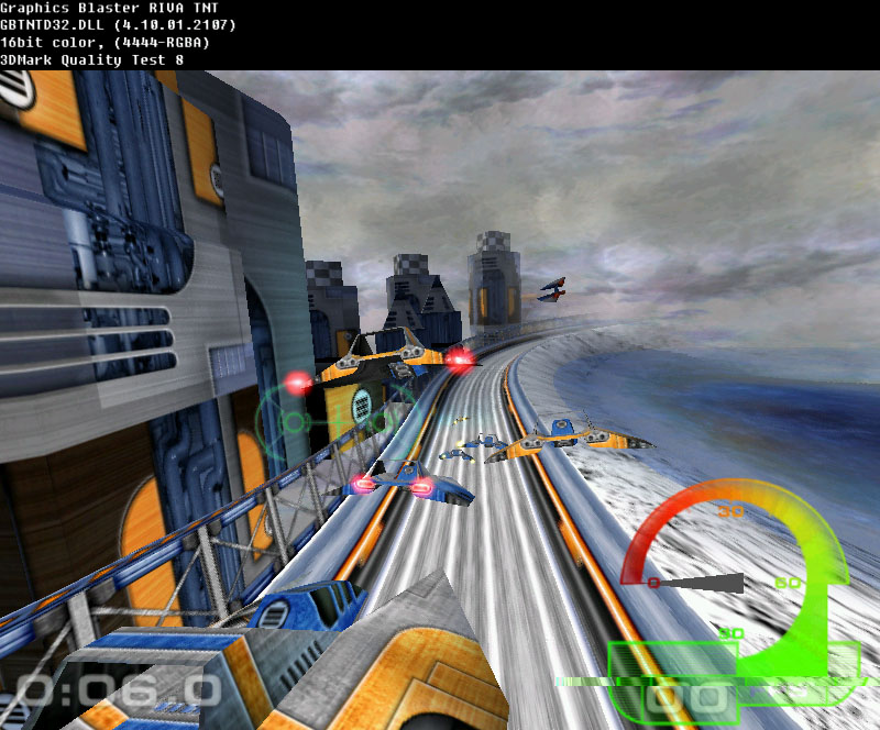 Have a look at the below selected screenshots taken by 3D-Mark99 test suite for comparisons. Click on the tiny pictures to get the full-sized version but, each one is about 300Kb in size. I recommend that you open these in a separate window so that you can continue with the review, while the image loads.