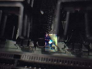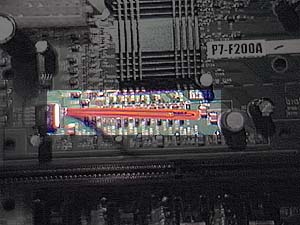 Since Freetech adopted AMD's reference design, you can expect the same layout of most components, and this includes the large capacitor and ATX power connector right in front of the CPU. This was also found on the MS-6167 motherboard. However, the capacitor is pretty huge and shaving the fan would certainly not help either. Fortunately, I could bend the capacitor to accomodate the CPU (with the large heatsink and fan). For those who intend to use large Global Win and Alpha heatsinks, do take note of this.