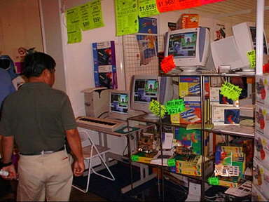 There is also a booth on Palm Pilot but not seems to happening at all. | A booth selling computer peripherals in COMEX 98. Strange. | |