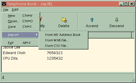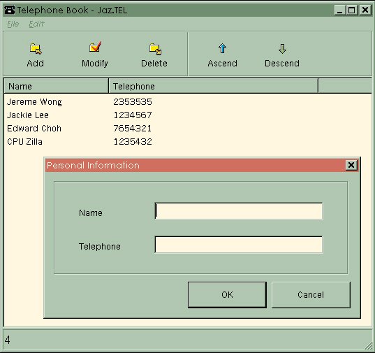 Also unique to the jazPiper is an integrated digital phone book, which again adds to the "personal" functionalities of the device. Using the software "Telephone Book" given in the package, you have to create a list of entries storing all your friends' telephone numbers before uploading it into the internal memory of the jazPiper. I did a small calculation and realised that each entry is approximately about 50 Kb in size, which means to say if you are going to buy the jazPiper and use it as your portable telephone directory, you can store up to 655 entries merely using the internal 32MB base memory of the jazPiper! Then again, if you are going to do just that, maybe you should have just exchange your jazPiper with my CASIO digital phone book! ;)