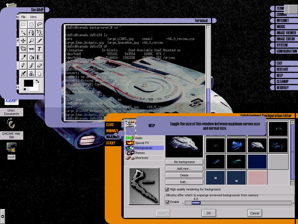 - Enlightenment (All other Window Managers are pussies compared to this)