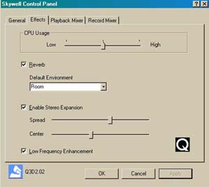 - Qsound 2.0: positional 3D, A3D compliant, Creative EAX compliant