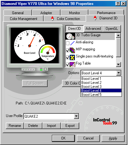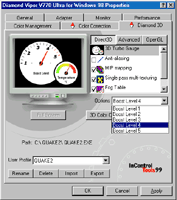 Installation of today's modern graphic cards are chicken-feet to most of us since 90% of them come with almost automated installation or idiot-proof manuals. In the Diamond V770 ultra's case, things were still the same. Bundled with diamond's InControls 00 software, configuration is easy and straight forward. In fact, this is one of the easist installation steps that i have done compared to other numerous graphic cards. (good news for those amatuers who want to do their own upgrade)