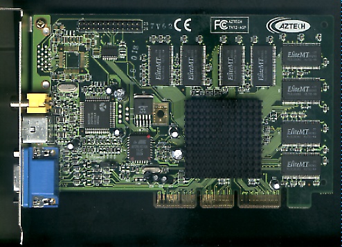 Built for the price conscious buyers, AZTECH have altogether designed and built 4 different models using the TNT2 chip. The reviewed model is the TNT2-AGP(A) (as shown above).