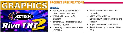 Video Card(s) | AZTECH Riva TNT2 Graphics Card |