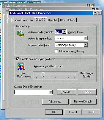 I'm not sure if it's Cardex on nVidia who has bundled the nVidia-Tweak utility, but it sure will come handy to adjust image quality or improve the performance a bit. Here's how the NV-tweak and it's additional properties page look like: